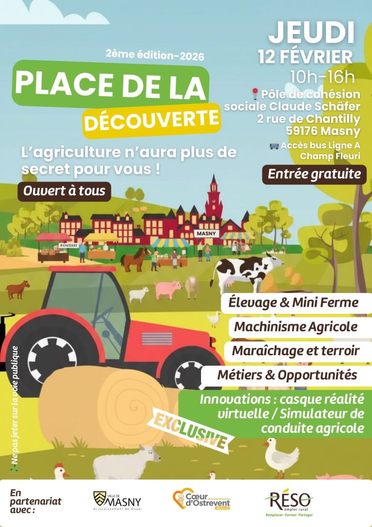 12 février 2026 RÉSO, en partenariat avec Cœur d’Ostrevent Agglo, organise la Place de la Découverte à Masny le 12 février 2026.Cet événement a pour objectif de faire découvrir les métiers, les structures locales et les opportunités d’emploi du territoire,…